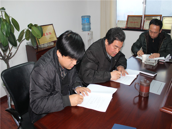 會(huì)后,為充分體現(xiàn)框架式管理模式,同時(shí)便于年終考核,獎(jiǎng)優(yōu)罰劣,總經(jīng)理趙明海與各負(fù)責(zé)人簽訂了2014年度目標(biāo)責(zé)任書(shū)。為強(qiáng)化落實(shí)安全工作,主管安全工作的副總魏述剛與各負(fù)責(zé)人簽訂了2014年安全生產(chǎn)管理目標(biāo)責(zé)任書(shū)。